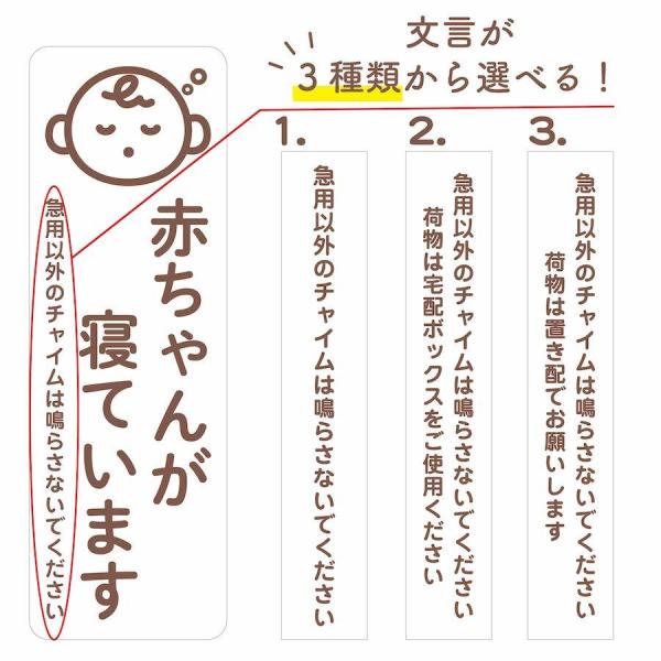 インターホンの近くや玄関扉に貼って、寝ている赤ちゃんが来訪者のチャイムで起きてしまうのを防ぎます。
