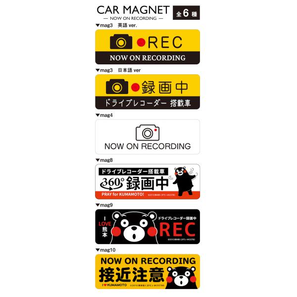 ドライブレコーダー 録画中 くまモン マグネット ステッカー NOW ON RECORDING ドラレコ 危険運転 盗難 いたずら 防止 くまもん 接近注意 mag10