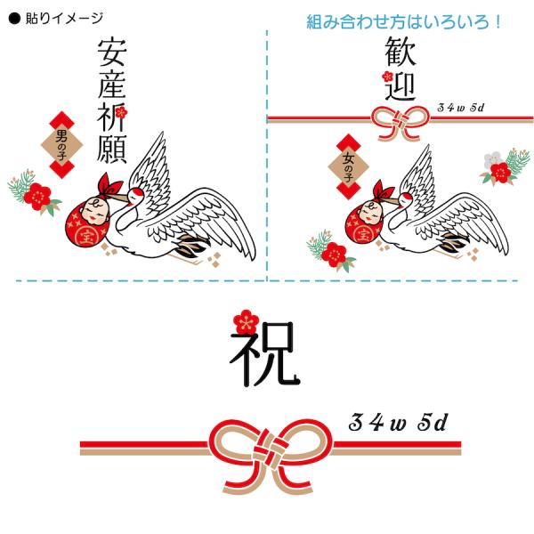 マタニティシール 水無しで貼れる セルフ マタニティフォト ベリーペイント シンプル かわいい おしゃれ 和風 鶴 安産祈願 金 ペイント お腹 mtn12