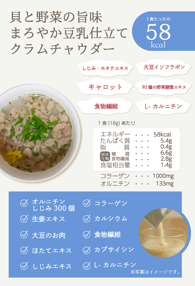 メール便 送料無料 ぷるるん姫 満腹美人 食べるクラムチャウダー24食入り 豆乳仕立て 減塩タイプ ダイエット スープ