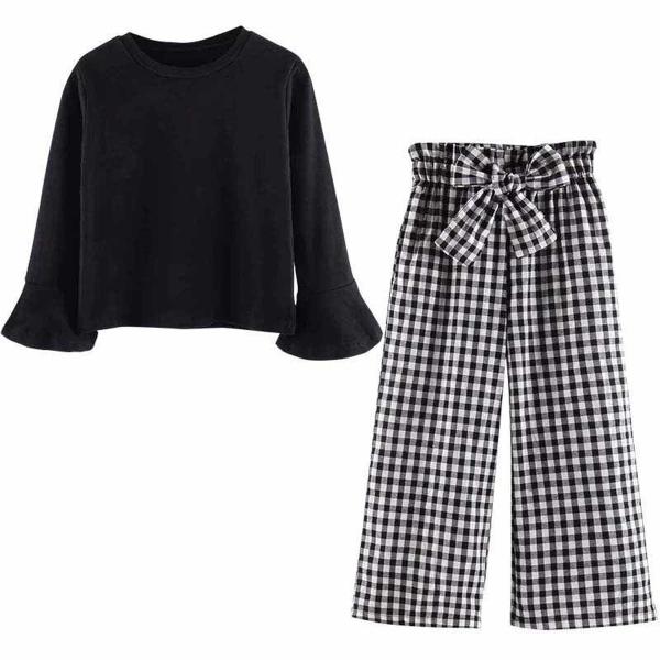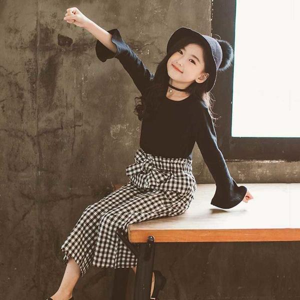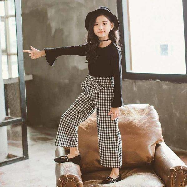 女の子 格子柄 千鳥格子 セット カットソー パンツ 100cm 110cm 120cm 130cm 140cm 150cm 160cm 長袖 カワイイ 大人 おしゃれ プレゼント 贈り物 キッズ 秋 お出かけ