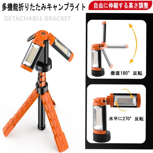 LED投光器 充電式 作業灯 COBライト 無段階調光/調色 SOS赤点滅 70000mAh電池 実用点灯7H〜100H IPX5防水 360°回転 三脚スタンド付き【適格請求書発行可】