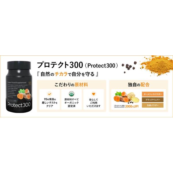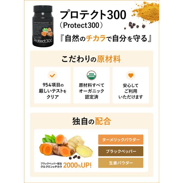 プロテクト300 アビオス公式 ターメリック クルクミン ウコンうこん オーガニック サプリメント サプリ 黒胡椒 生姜 エイジングケア 中年 ヘルスケア