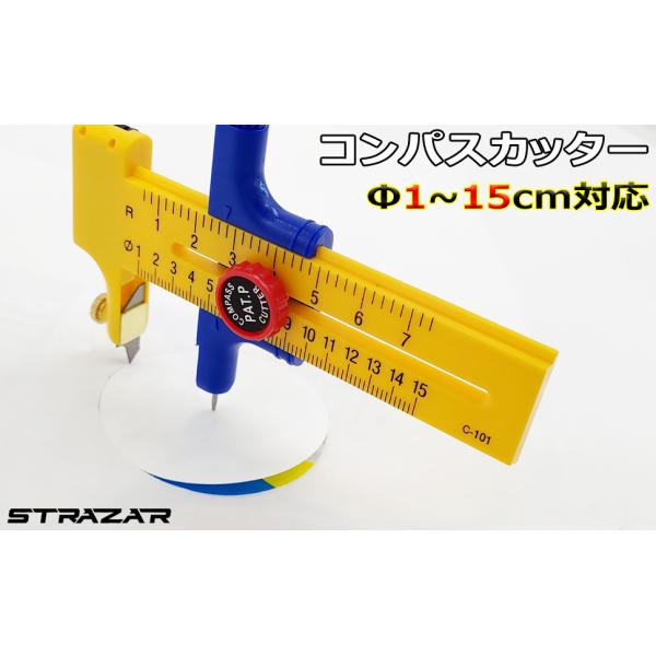 コンパスカッター サークルカッター 円切りカッター (1cm〜15cm 対応) 替え刃6枚付属