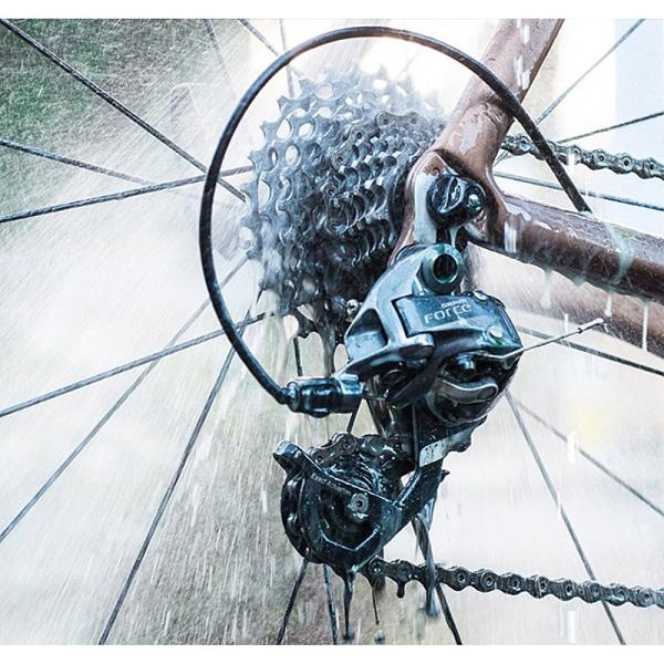 チェーンリング、カセット、ディレーラーなどのドライブトレインにスプレーして使用する洗浄剤。100%生分解性で各部に安心して使用可能です。