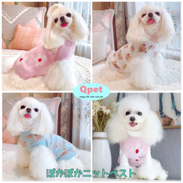 【SALE】1650円→1280円 犬 犬服 秋冬 セーター ニット ベスト ペット服 猫 小型犬 ドッグウェア 花 熊 おしゃれ 暖かい 可愛い お散歩 防寒 2011 Qpet
