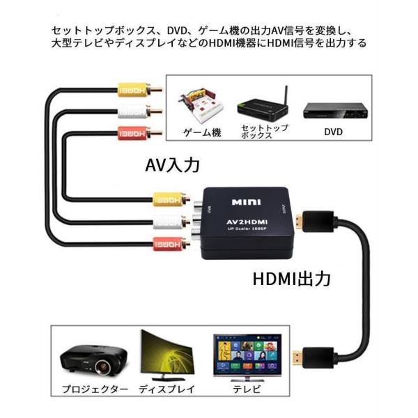 RCA→HDMI 変換器 AVコンバーター 3色ケーブル ゲーム ビデオデッキ cvt-RCA-HD-black