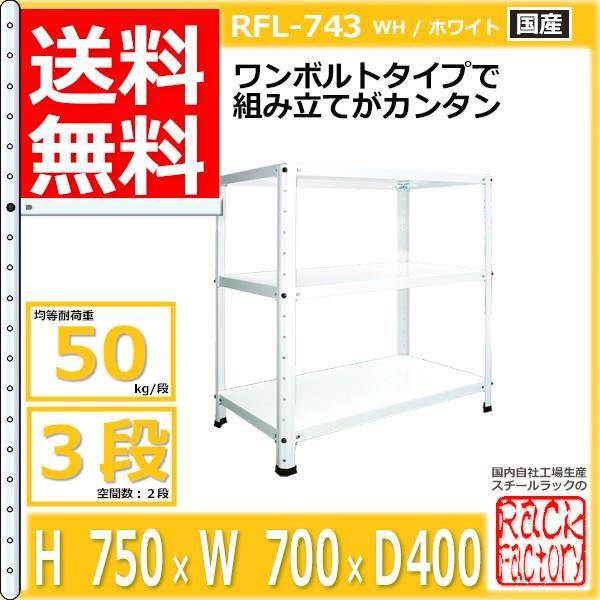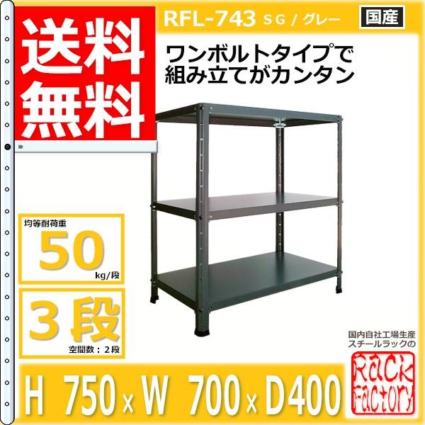 スチールラック 幅70cm RFL-743 50kg/段 H750xW700xD400 3段 収納 オフィス用 ワンボルト ライトラック