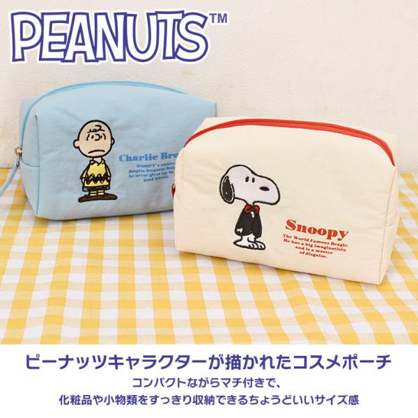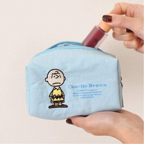 スヌーピー SNOOPY 化粧ポーチ ミニ 小さめ コスメポーチ 自立 小物入れ 化粧品 コスメ 収納 撥水 コンパクト マチ付き 刺繍 かわいい