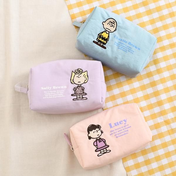 ビーグル・スカウト ピーナッツ PEANUTS 犬 いぬ イヌ Woodstock ウッドストック 鳥 小鳥 ルーシー Lucy チャーリー・ブラウン Charlie Brown チャーリーブラウン サリー アイボリー ピンク イエロー 黄色 ブルー 水色 パープル 紫 パステルカラー 刺しゅう アイテム 雑貨 小物 日用品 便利グッズ 整理 整頓 収納 マルチポーチ ポーチ コスメ収納 メイク収納 バニティケース バニティ メイクケース 収納ポーチ 小物ポーチ トラベルポーチ フラットポーチ 小さいサイズ ファスナー付き