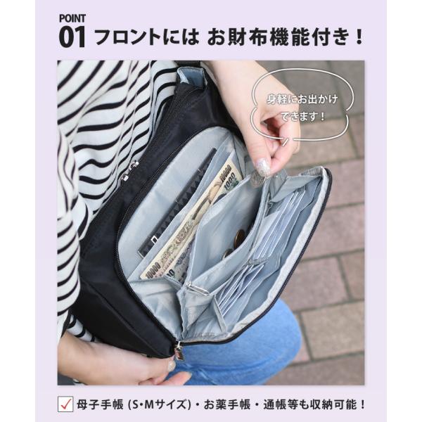 母子手帳(S・Mサイズ)やお薬手帳、通帳等も収納可能。