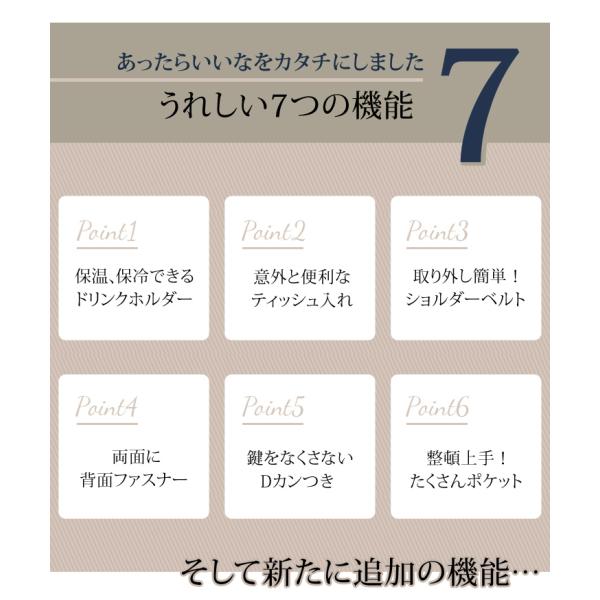 仕様:|内側/ファスナーポケット×1、メッシュファスナーポケット×1、ドリンクホルダー(アルミ加工)×2、Dカン×1