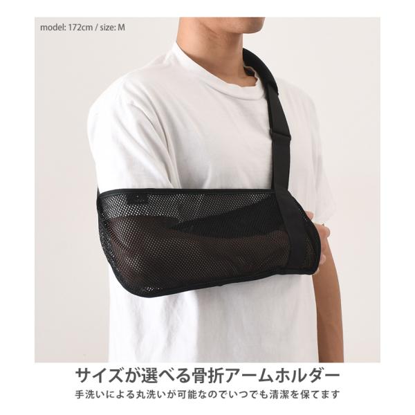 メッシュ素材で快適。サイズが選べる骨折アームホルダー