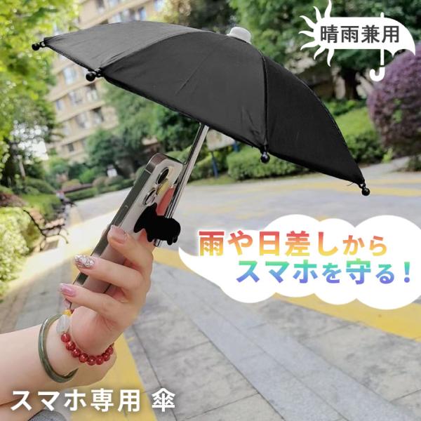 雨や日差しから守る。ホルダー付きスマホ用傘