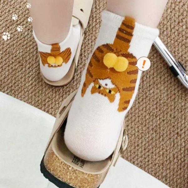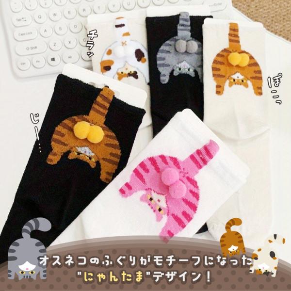 靴下 クルーソックス レディース 黒 白 まとめ買い セット 猫 にゃんたま おしゃれ 春 夏 薄手 綿混 ニャンタマ ねこ ネコ 可愛い