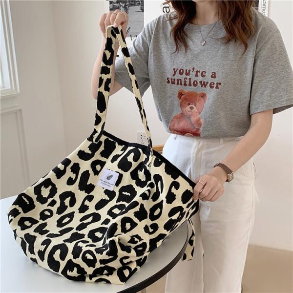 トートバッグ レディース 大きめ a4 肩掛け レオパード ヒョウ柄 帆布 キャンバス おしゃれ かわいい 韓国 マチ付き 通勤 通学 買い物 ポイント消化