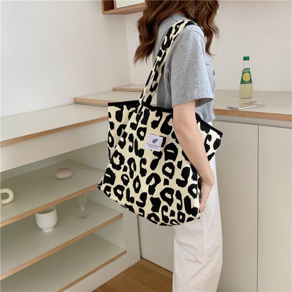 レオパード 黒ふち キャンバス トートバッグ レディース バッグ a4 大きめ 肩掛け マチ付き レオパード柄 ヒョウ柄 おしゃれ かわいい 軽い 大容量 収納 横型 韓国ファッション カバン マチ広 通学