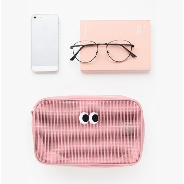ポーチ 小物入れ レディース メンズ おしゃれ 韓国 コスメ メイク メッシュ 刺繍 化粧品 スクエア 横型 目玉 トラベル 旅行 夏 海 ポイント消化