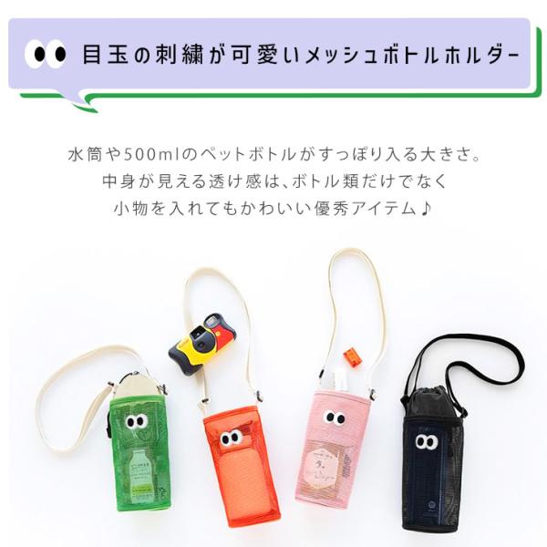 目玉の刺繍が可愛いメッシュボトルホルダー