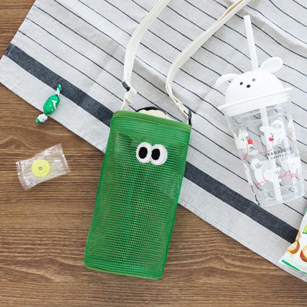 目玉デザイン メッシュ ボトルホルダー メンズ レディース 水筒ホルダー ドリンクホルダー ボトルカバー ショルダー 肩掛け 斜めがけ 縦型 バケツ型 小さめ 軽量 おしゃれ かわいい ペットボトルホルダー 夏