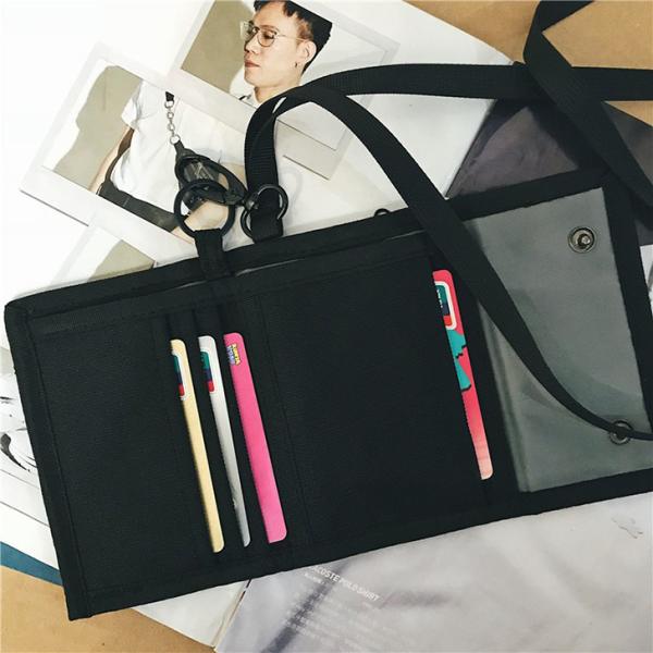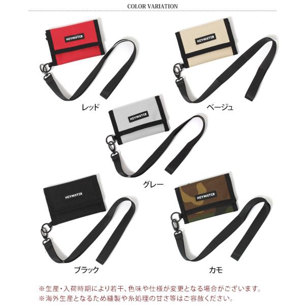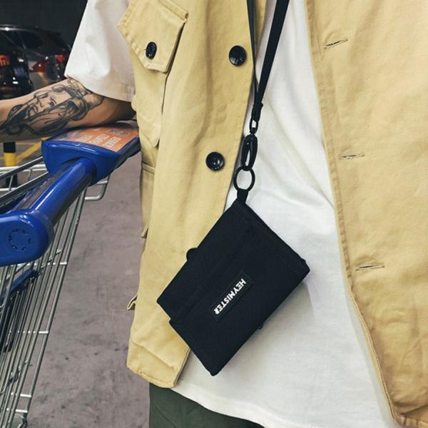 ストラップ付き プレートロゴ ナイロン ミニ財布 メンズ ミニウォレット 三つ折り財布 サイフ カード入れ ネックストラップ 首下げ 紐付き 小さめ コンパクト おしゃれ 子供 キッズ ジュニア 男の子 男子
