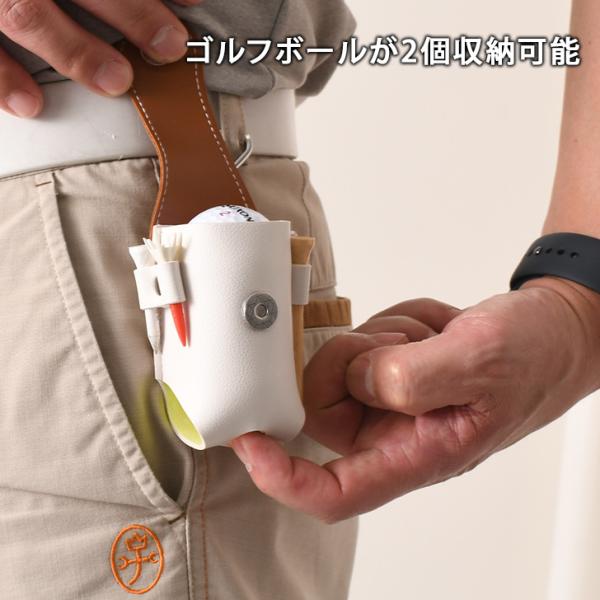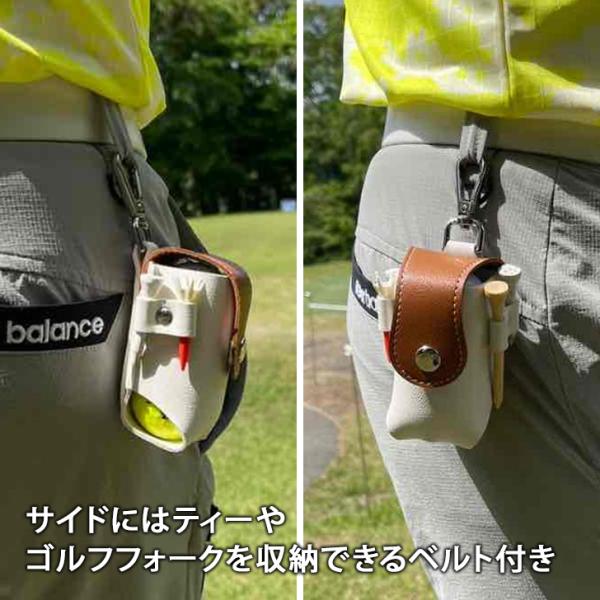 PUレザー ゴルフ ボールホルダー 2個入れ 丈夫 縦型 ボール グリーンフォーク 収納 おしゃれ メンズ レディース ラウンド用品 軽量 ボールポーチ ティーケース ティー収納 コンペ 景品 プレゼント 配色