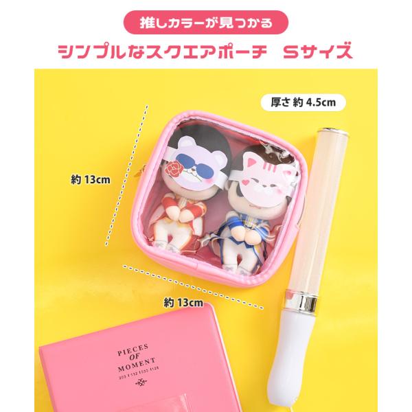 ポーチ クリア 透明 スクエア 小物入れ 収納 ぬいぐるみ アクリルスタンド 推し活 推しカラー コンサート ライブ 化粧品 コスメ デイリー