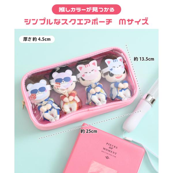 ポーチ クリア 透明 スクエア 小物入れ 収納 大きめ ぬいぐるみ アクリルスタンド 推し活 推しカラー コンサート ライブ 化粧品 コスメ