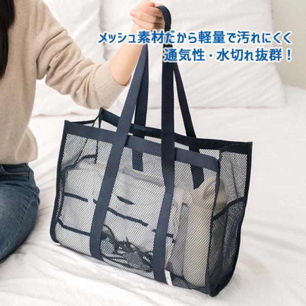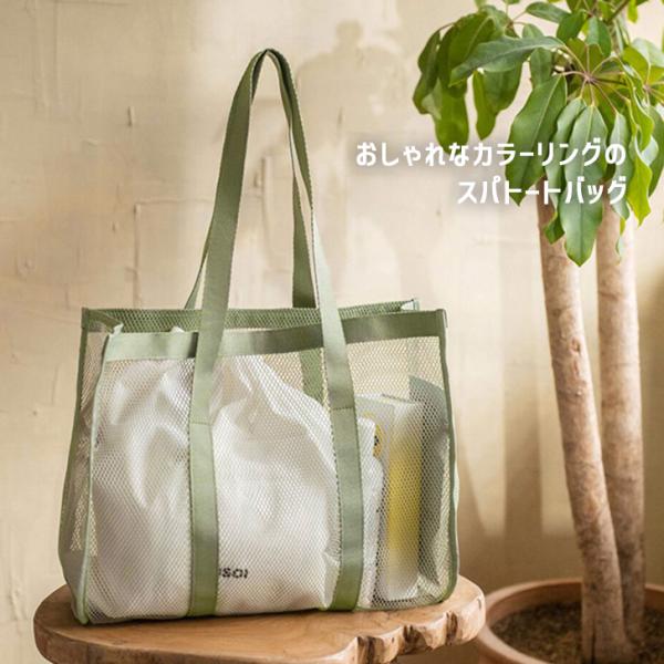 トートバッグ メッシュ スパバッグ 大きめ 大容量 マチ広 シンプル スクエア 手提げ レジャー 旅行 温泉 海 軽い エコバッグ 無地