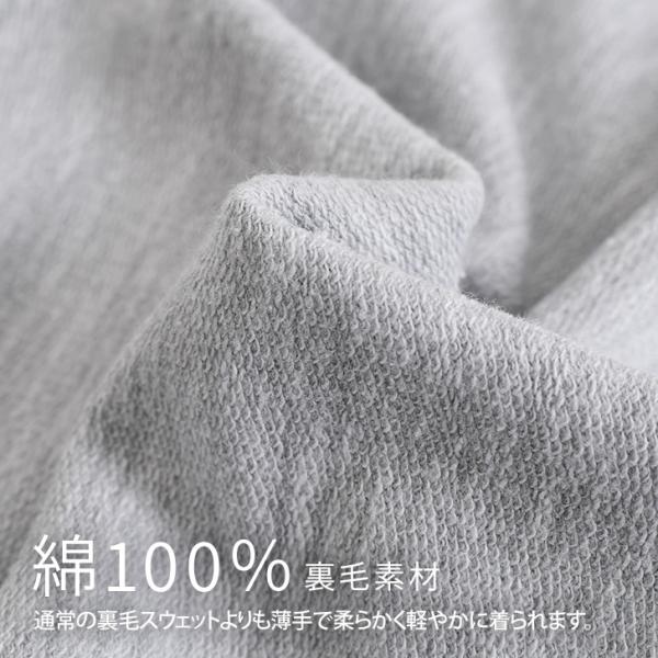 通常の裏毛スウェットよりも薄手で柔らかく、Tシャツ感覚で軽やかに着られる。