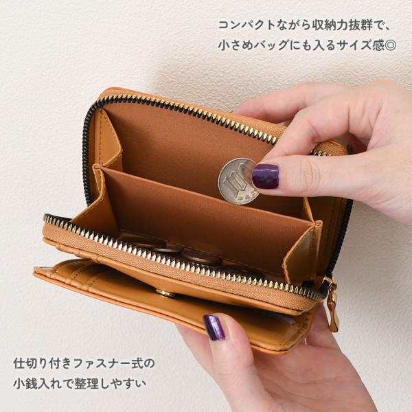 仕切り付きファスナー式の小銭入れで整理しやすい