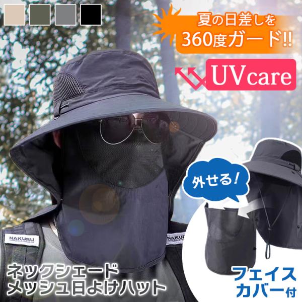 日よけ帽子 サファリハット アドベンチャーハット 後ろ メンズ レディース ママ 首 釣り フェイスカバー ネックガード UV 夏 日焼け