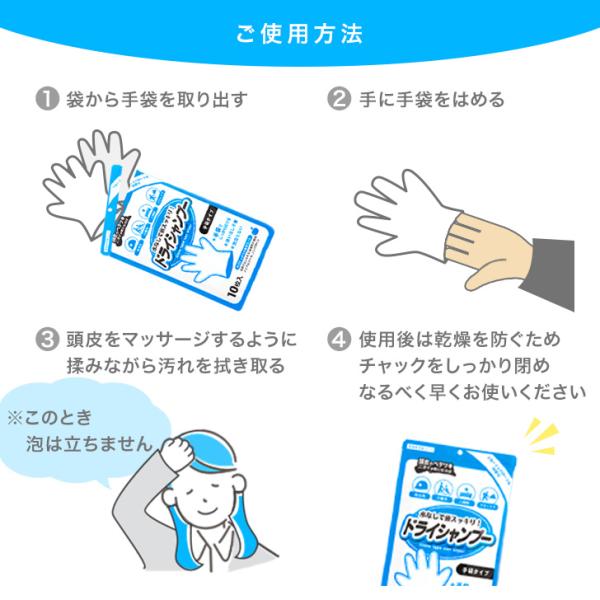 ドライシャンプー 手袋 洗髪シート 防災 入院 介護 長期保存 水なし 低刺激 ノンアルコール パラベンフリー 災害 日本製 非常時 備蓄