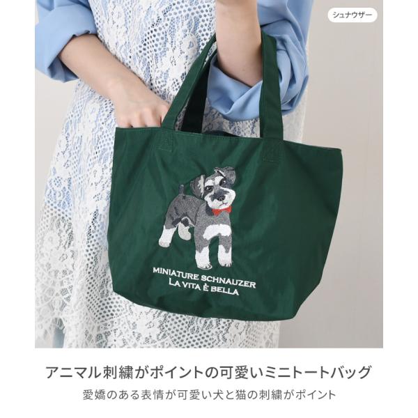 ソビア SOBIA トートバッグ レディース 小さめ ナイロン 軽い 犬 猫 アニマル 刺繍 ミニトートバッグ a5 マチ広 手提げ 可愛い