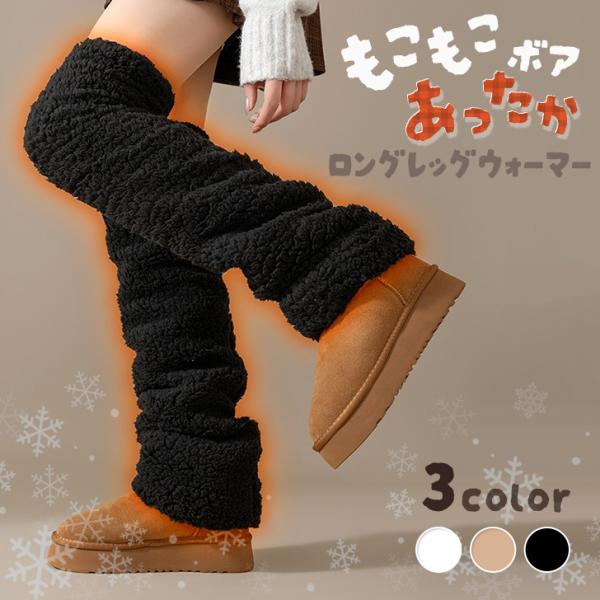 レッグウォーマー 靴下 ハイソックス レディース 秋冬 暖かい 防寒 ロング ボア ファー もこもこ おしゃれ レッグカバー 裏起毛 制服