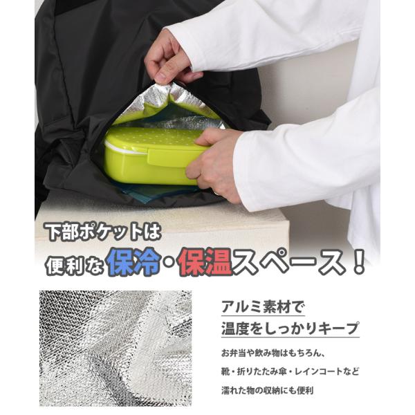 お弁当や飲み物はもちろん、靴・折りたたみ傘・レインコートなど濡れた物の収納にも便利