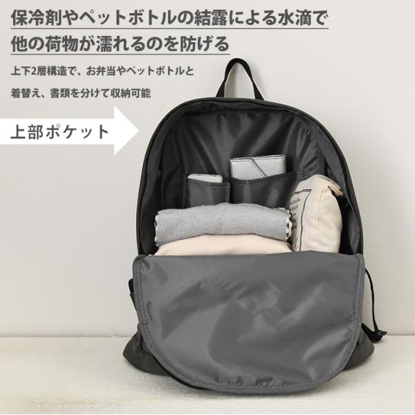 上下2層構造で、お弁当やペットボトルと着替え・書類を分けて収納可能
