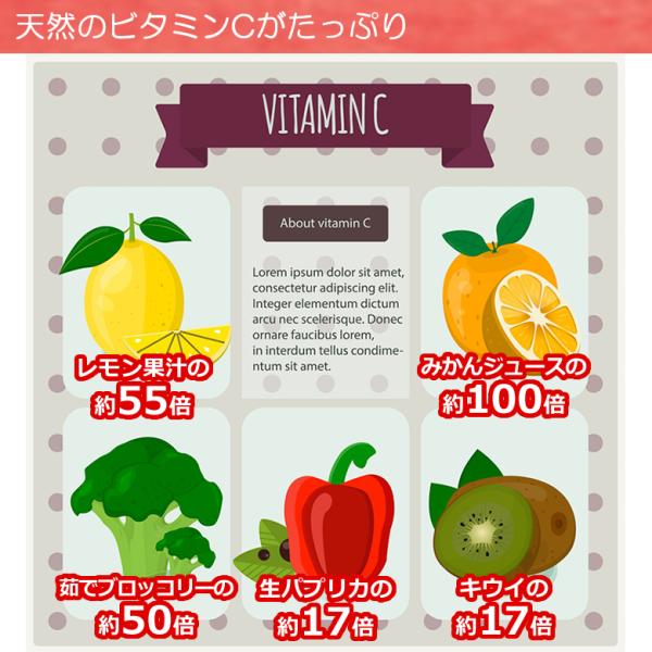 また、紅茶などに入れることでレモンティーの様な酸味を味わいながら手軽にビタミンCを補給できるパウダーとして人気があります。