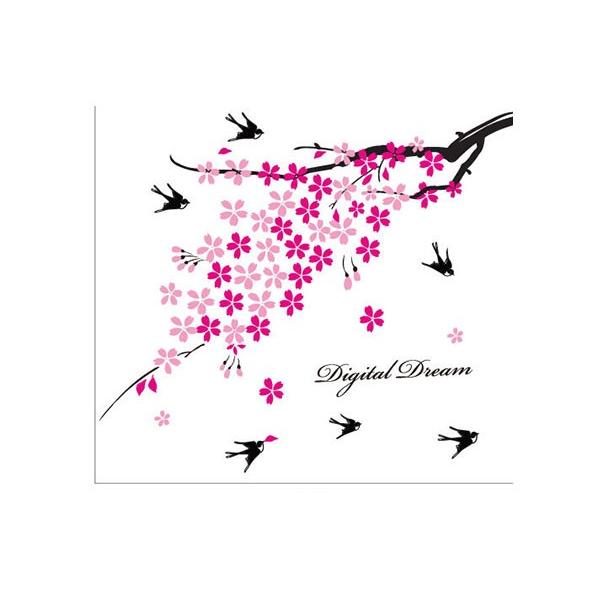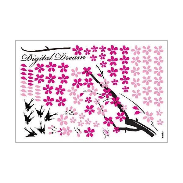 068 ウォールステッカー 貼るだけ 壁 DIY 模様替え インテリア 木 ピンク 小鳥 digital dream 壁