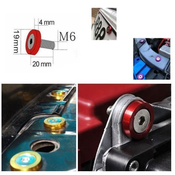 盗難防止 ナンバー フェンダー ボルト JDM アルミ カラーワッシャー ボルトリング M6 同色 2個set 車 汎用 外装 カー用品 送料無料 レッド