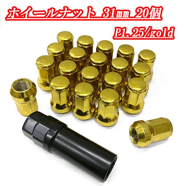 ホイールナット ロックナット 4穴 5穴 20個 スチール ホイール ナット 袋ナット 外7角形 31mm M12xP1.25 送料無料 ゴールド