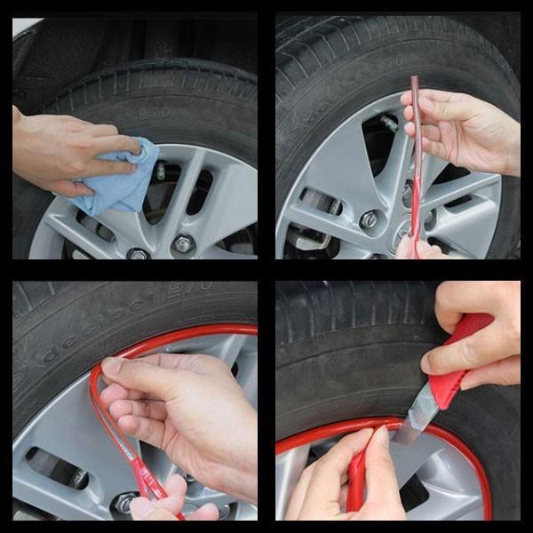 ホイールリムガード リムステッカー リムテープ タイヤ 保護カバー 8m 車 バイク カー用品 送料無料 レッド