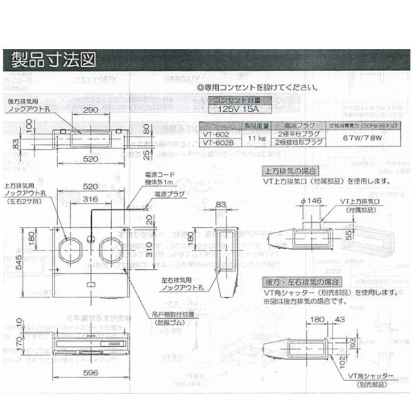 ◆排気方向:上/後/左右(後/左右排気の場合は別途部品が必要です。)