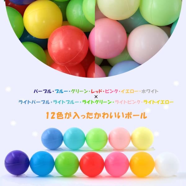 子どもが大喜ぶ!カラフルボール!ボールプールやキッズテントに入れたり、そのまま遊ぶのはもちろん、水を張った子供用プールに浮かべたり、室内用のキッズテントや子供テントやキッズサークルに入れるなど、お子さまの年齢に合わせた遊び方ができます。やわらかいポリエチレン製のボールを採用しているので、体に当たっても痛くありません。『収納に便利な特大ふくろ付き』幅80cm、高さ70cm。色々なサイズのボールもまとめて収納でき、お子さまにも楽しくお片付けに参加していただけます。『ボールの数が少ないとさびしい』とのお客様の要望にお応えして、大量のボールをまとめ買いでご提供しております。 【サイズ・重さ】約5.5cm 約3.4g、 7cm 約5g、8cm 約7g 【カラー】 カラー:ブルー、グリーン、レッド、ピンク、イエロー、パープル、ホワイト等。