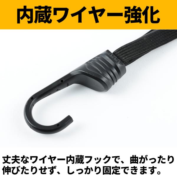 ・幅12mmで厚さが2mmに達した構造で、伸縮性があり良く伸びる上に、強度アップを向上させて、強力で引き張っても傷がつけにくく、荷物をしっかり固定しています。