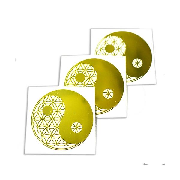 風水 陰陽(インヤン) フラワーオブライフ(生命の花) 金色 メタル(金属) ステッカー 直径:3cm 3枚セット