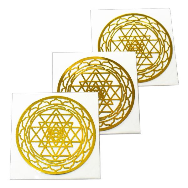 チベット密教 曼荼羅(マンダラ)シュリヤントラ(吉祥曼荼羅) 金色 メタル(金属) ステッカー 直径:3cm 3枚セット