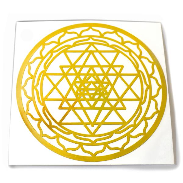 チベット密教 曼荼羅(マンダラ)シュリヤントラ(吉祥曼荼羅) 金色 メタル(金属) ステッカー 直径:8cm 1枚売り 幾何学模様【メール便対応可】