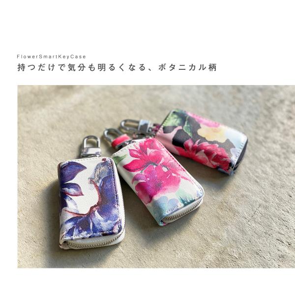 爆買 プレゼント キーケース スマートキー フラワー ボタニカル