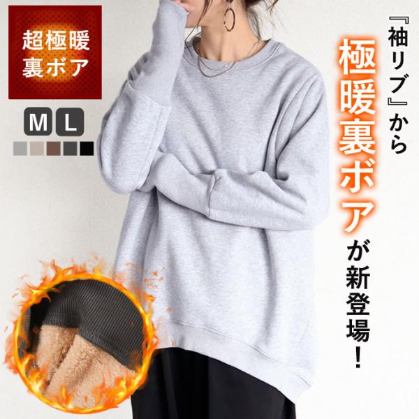 1868円~ クーポンで★ トップス レディース トレーナー スウェット 裏起毛 ボア 長袖 秋 冬 黒 おしゃれ かわいい 極暖 リブ長 あったか [郵3]^t1040^爆買